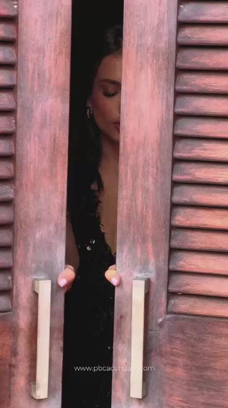 Su silueta ajustada realza la figura, mientras el drapeado delicado en la parte superior y la cintura aporta sofisticación.